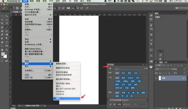 ・启动应用程序PhotoShop,使用菜单中的“文件 > 脚本 > 浏览”功能,找到 “安装脚本(installer).jsx” 文件。・重启 PhotoShop ,在 PhotoShop 顶部菜单栏: 窗口 > 扩展功能 > fonTags 找到并打开 fonTags。