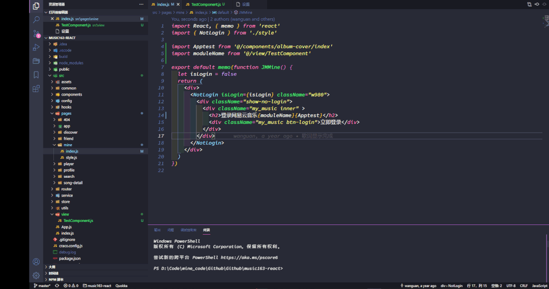 功能:增强了 git功能,支持在VSCode查看作者、修改时间等等 -