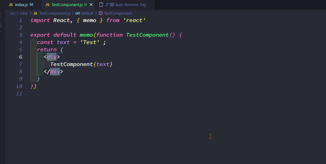 插件名: ES7 React/Redux/React-Native/JS snippets -
