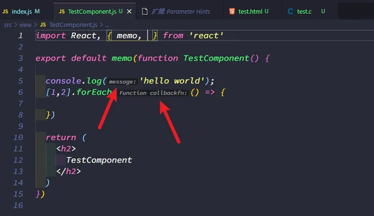 功能:提示函数的参数类型及消息