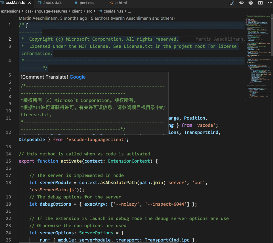 功能:翻译识别代码中注释部分,不干扰阅读。支持不同语言,单行、多行注释、