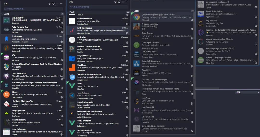 根据需求,大家安装对应插件即可(安装太多插件,VSCode会很卡) -