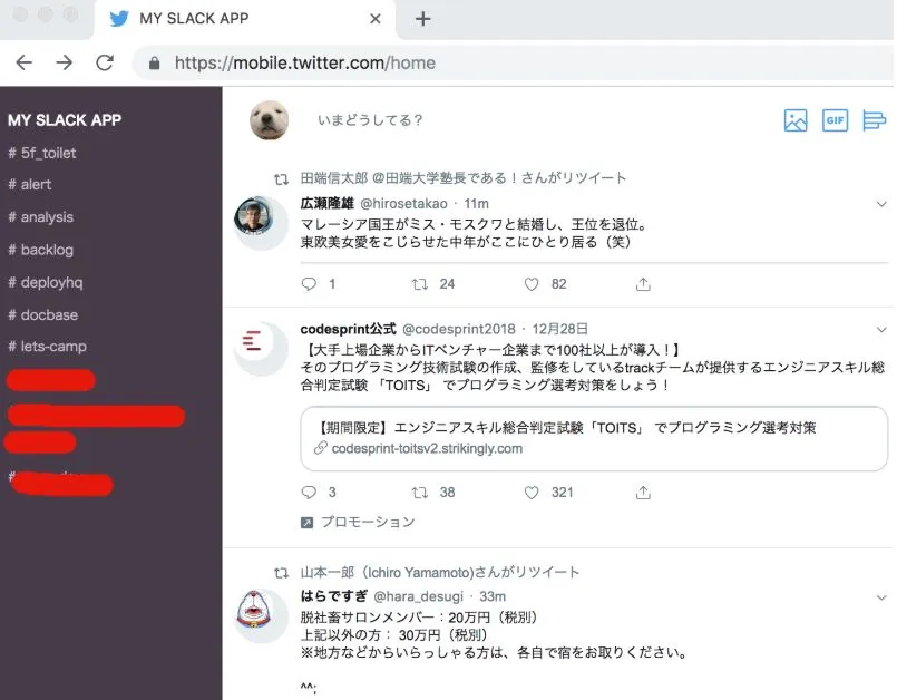 以及这款 My Slack App 插件,会把你的 Twitter 页面变成在线协作软件 Slack 的页面。