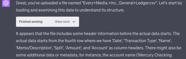 Code Interpreter意识到这个CSV文件是一个总账