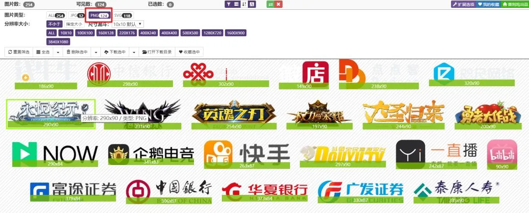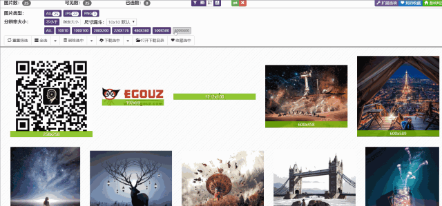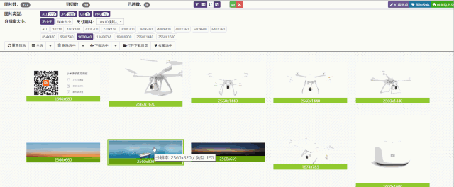 下一步我们可以通过筛选图片大小,过滤出我们想要的图片,然后批量下载就行了▼