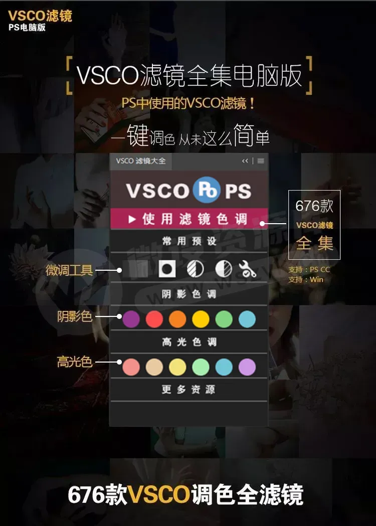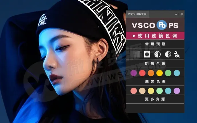 Vsco滤镜大全PS调色插件是一款可以在Photoshop上模拟VSCO手机滤镜效果的插件,它可以让你一键调出文艺清新的胶片色彩感