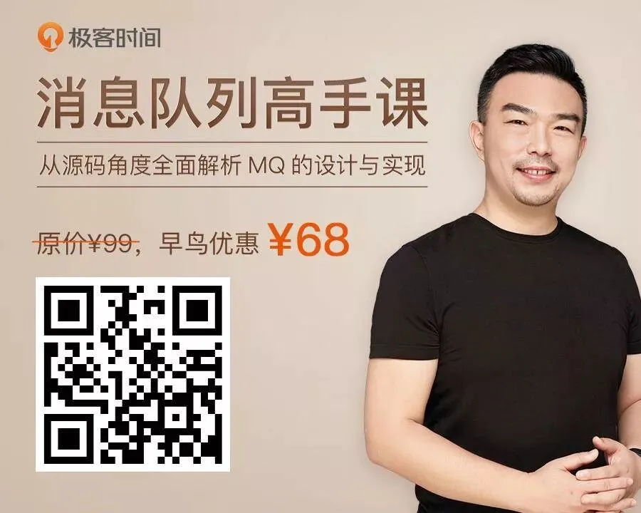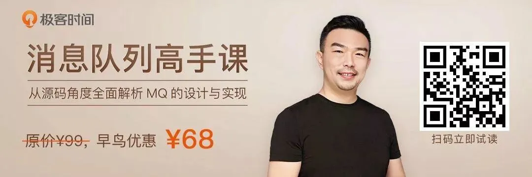 在设计开发中间件系统的过程中,我读了很多优秀开源软件的文档和源代码,从中学习和借鉴了很多优秀的设计思想与编码技巧,也融入了很多自己的思考和创新。这段经历对我而言弥足珍贵,所以我和极客时间合作了《消息队列高手课》专栏,希望把我学到和悟到的这些底层、通用、有深度的技术分享给你。