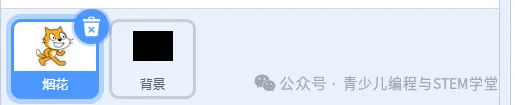 所以,对于实现烟花所需要角色没有要求。因为,我们只是需要角色的替身–克隆体,由克隆体执行设计的程序,而本体是隐藏起来的。