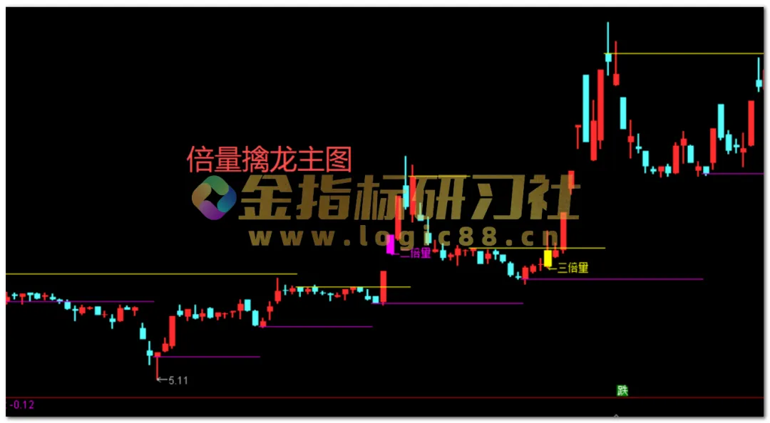 关于画线的滞后性 :源码中的画线逻辑包含 BACKSET 函数。这意味着,黄线和紫线是用来确认当前趋势状态 的,而不是让你看到线刚出来就无脑冲的。线的作用是告诉你:现在是震荡市还是突破市 。避免弱势二倍量 :如果在股价下跌趋势中,或者在紫线下方出现“二倍量”反抽,大概率是诱多,不要碰。只做紫线之上的信号 。止损位设置 :买入后,以**紫线(支撑线)**作为生命线。如果收盘价跌破紫线3%以上,说明箱体破位,主力弃守,坚决离场。