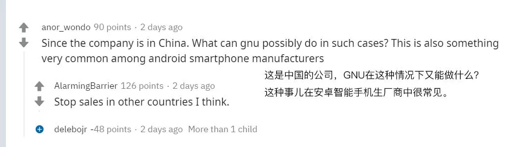 在 Reddit 社区,不乏有声音将其指向中国厂商不尊重开源协议,而这种问题最快速的解决方案就是限制软件使用: