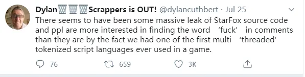 StarFox的源代码似乎已经大量泄露,人们更感兴趣的是在评论中找到“fuck”这个词,而不是因为我们拥有了游戏中使用过的第一种“多线程”标记脚本语言。
