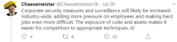 考虑到这次数据泄露中的数据类型和出处,一些游戏开发人员和评论员担心,视频游戏行业将变得比现在更加机密 ,以避免将来发生此类泄漏。