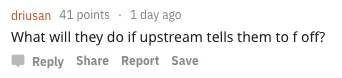driusan:如果上游回应他们f**k off,他们(OpenJDK 团队成员)会怎么办?
