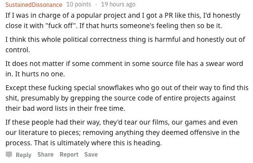 提交者认为,写脏话的开发者估计对自己措词很满意。