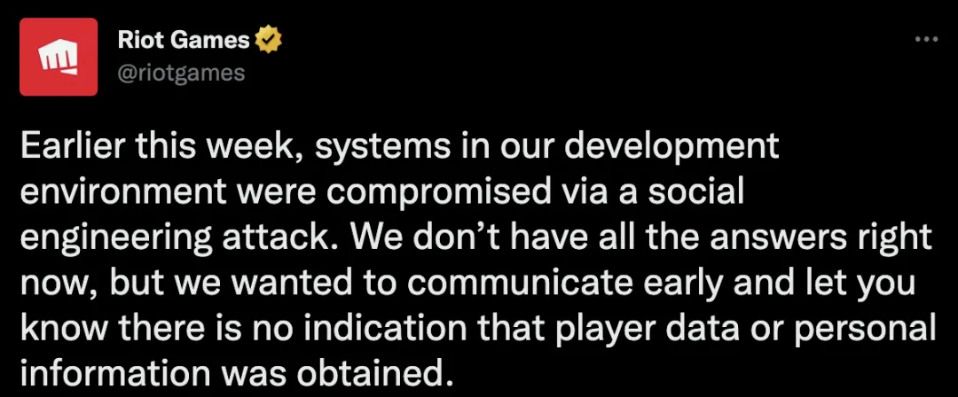 拳头公司在 1 月 21 日发文,表示在上周早些时候,其开发系统环境遭受攻击,但具体影响有多大,还有待调查。