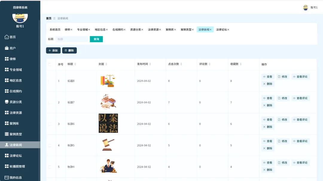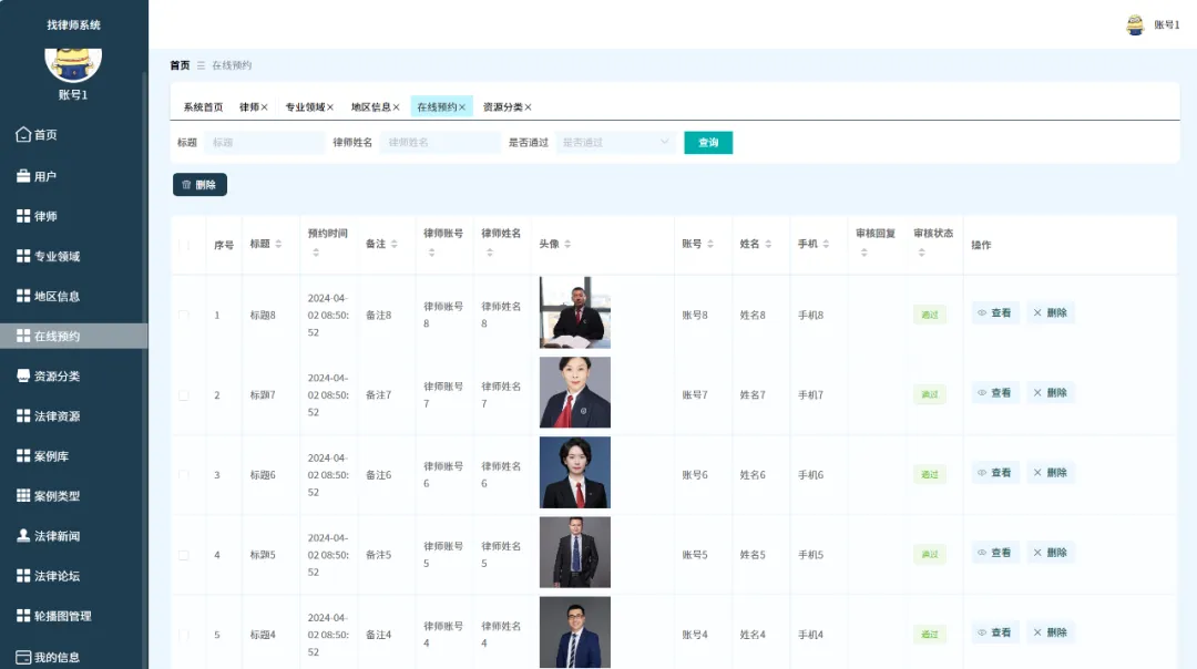 本项目(编号:springbootA415)为基于SpringBoot的律师在线咨询系统,通过数字化手段连接用户与律师资源。系统提供律师查询与推荐、法律案例检索、在线预约咨询、法律资源管理及论坛交流等功能,支持用户便捷获取法律服务,同时为律师提供案件管理与客户对接平台,提升法律咨询效率与服务体验。