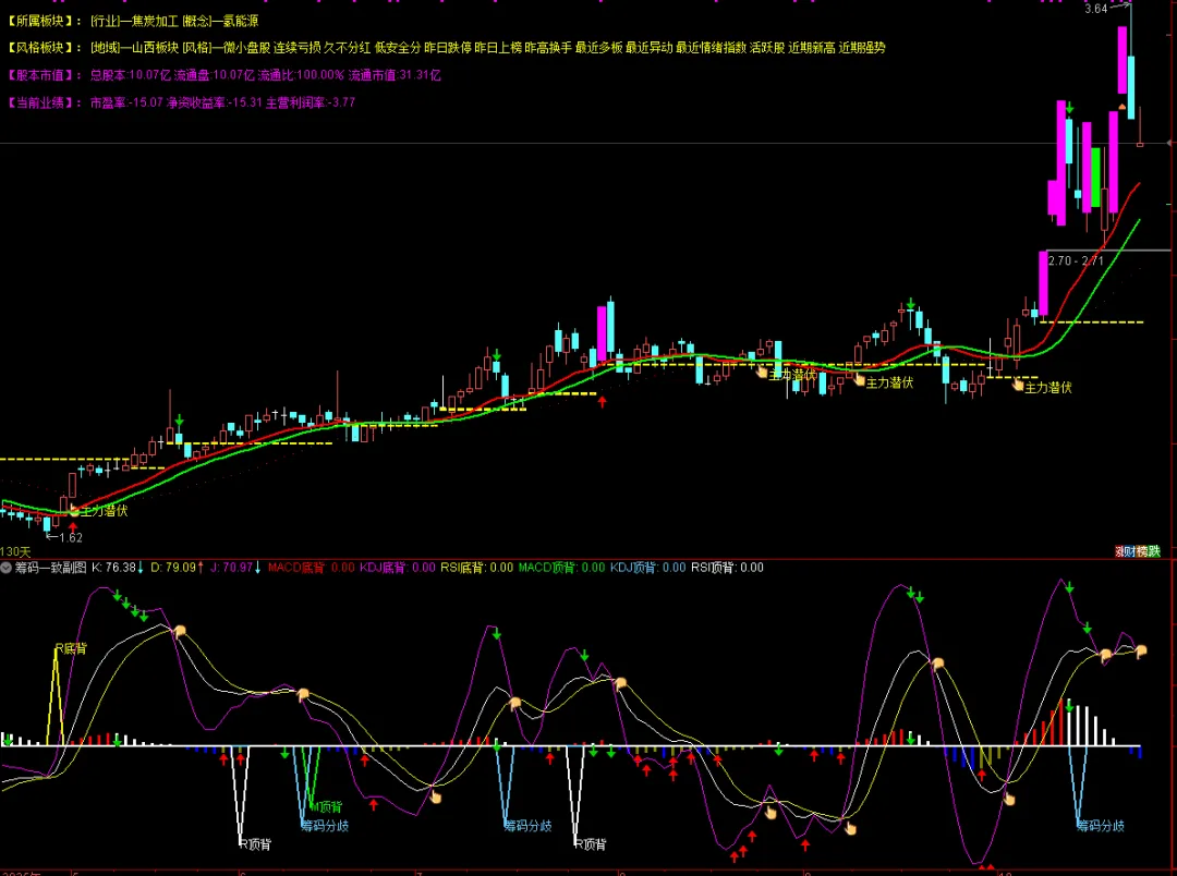主力潜伏:黄色文字提示,短波上穿HZ2时