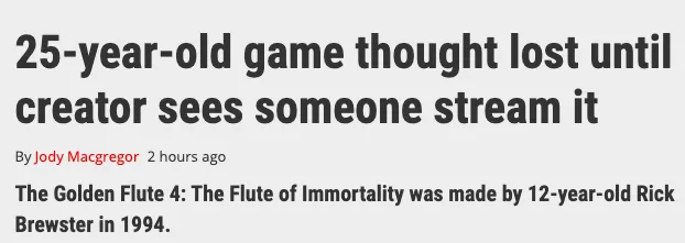 假如你 12 岁时自己编写了一个游戏,在没有备份的情况下,仅有一份的拷贝丢失后,你会想到 25 年后有人拿它做直播么?