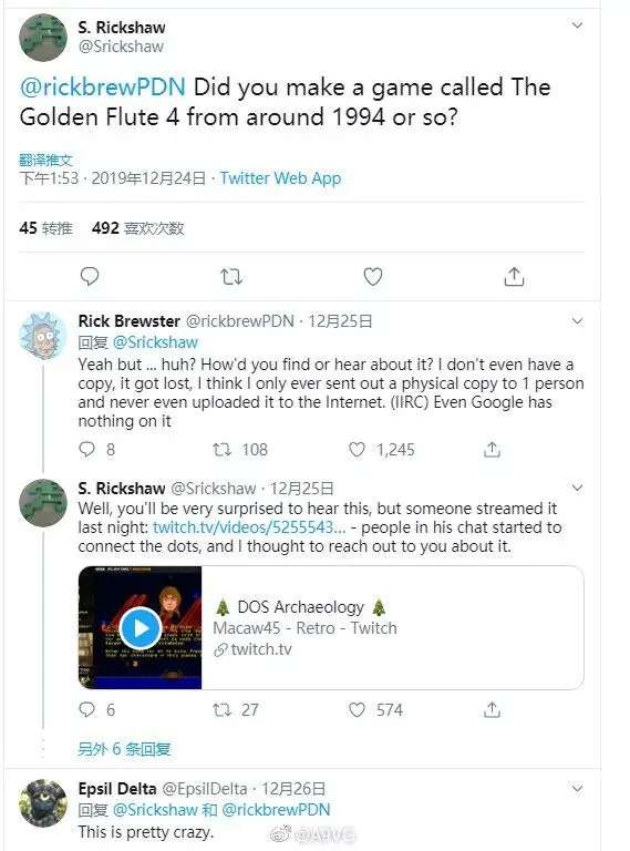重新找到丢失游戏的 Rick 非常开心,当天在推特上发了近 30 条推。