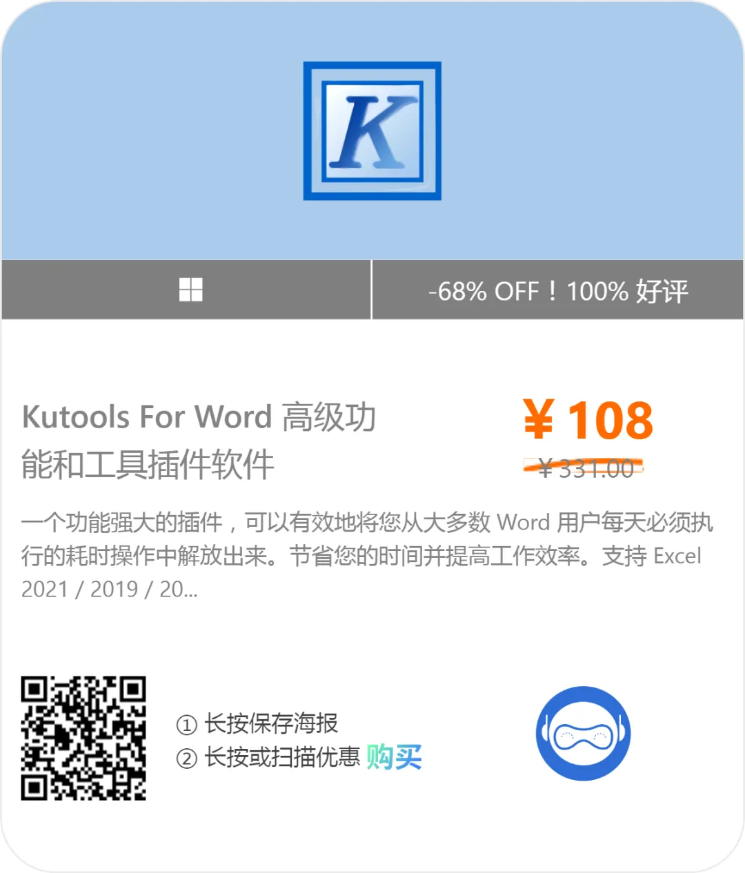这是我目前在用的一款Word插件,正版入手价108元,可扫描下方二维码详细了解!