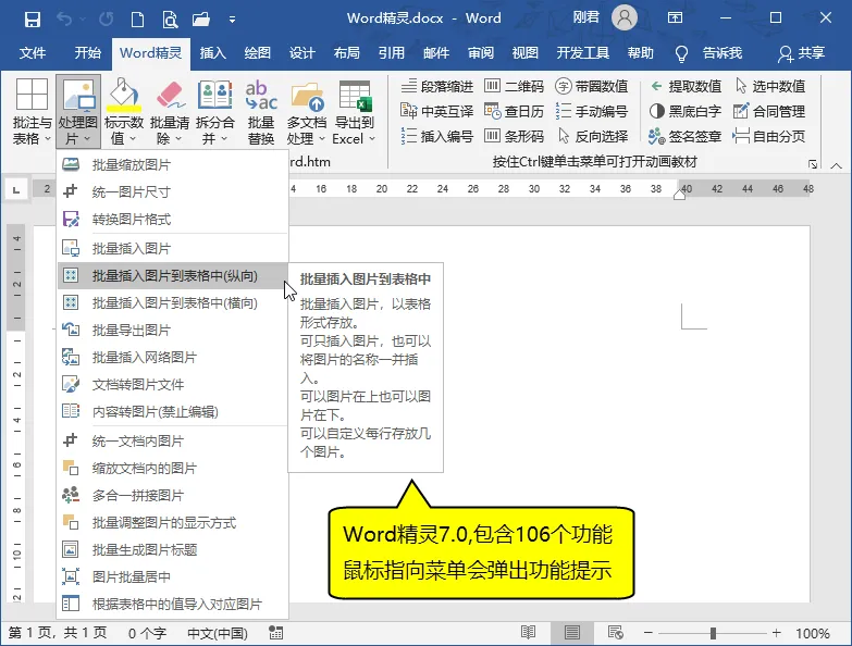 包含110个功能,可以批量合并文档、批量拆分文档、批量导出Word数据到Excel、批量转数据值转换成大写金额、批量插入图片、批量另存图片、批量统一图片尺寸、批量调整Word表格的格式、批量打印文件、批量生成PDF等等。