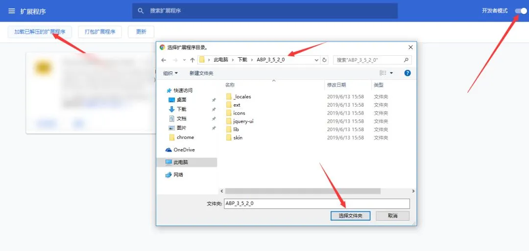 随后在chrome插件页面选择加载已解压的扩展程序,选择刚刚解压的文件夹即可。