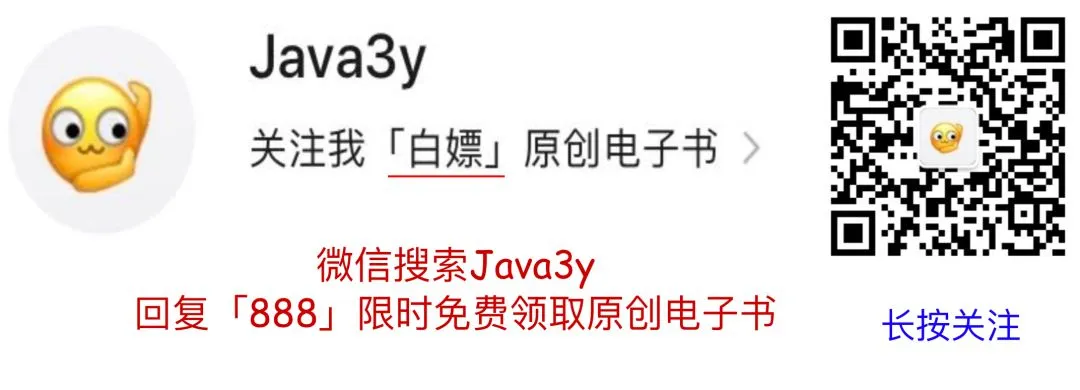 扫码或者微信搜Java3y 免费领取原创思维导图、精美PDF。在公众号回复「888」领取,PDF内容纯手打有任何不懂欢迎来问我。