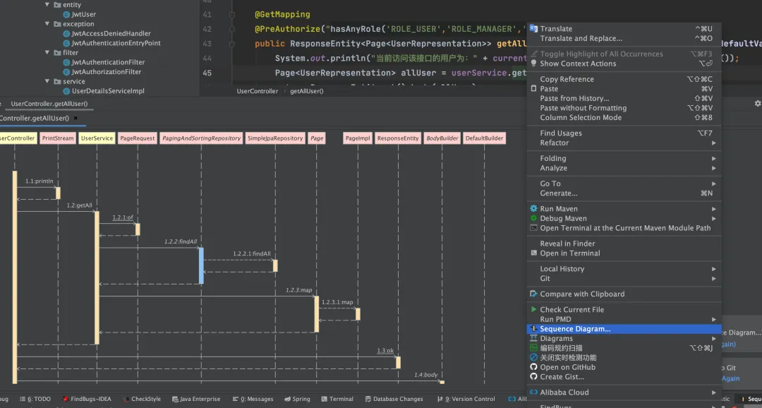 同样是一个必备的一个IDEA插件,非常实用。我一般用它来生成简单的方法时序图,方便我们阅读代码,特别是在代码的调用层级比较多的时候。