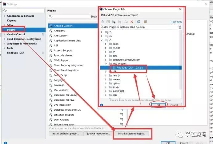 2.选择plugins–》install pluginfrom disk 选择相应插件包==》点击ok