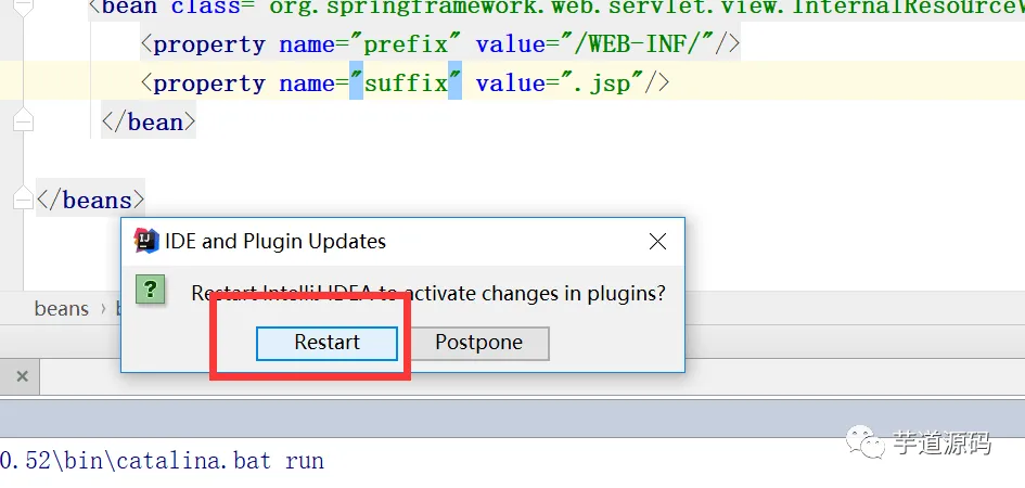 最后,“Restart”重启idea 让它加载一下新加入的插件!!!