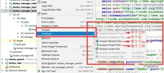 使用:右键单击(module、单个文件等)—>在快捷菜单中选择findbugs即可