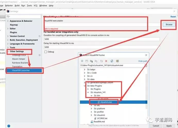 配置excutable===》选择到客户端的bin目录的visualvm.exe文件