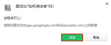 6、用户这时候只需要点击添加按钮就可以把该离线Chrome插件安装到谷歌浏览器中去,安装成功以后该插件会立即显示在浏览器右上角7、如果没有插件按钮的话,用户还可以通过Chrome扩展管理器找到已经安装的插件,点击在文件夹中显示,双击“贴吧清洁者.crx”