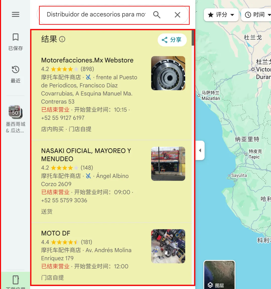 打开https://www.google.com/maps 输入产品关键词,就会搜索出来一堆的客户信息。