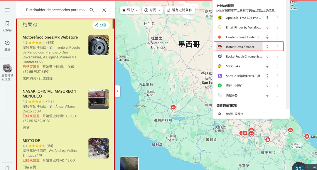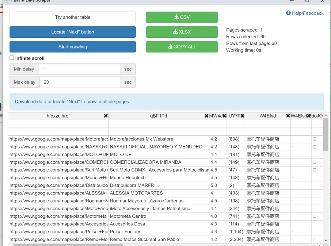 唯一不足的是,instant data scraper 无法抓取google maps 公司里的网址。