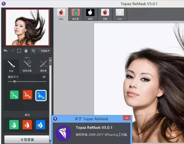 Topaz ReMask 5对于扣图提供了一种新颖的方式,快速而简单,利用动作结合通道和蒙版,可以快速的抠图,特别是对毛发(头发)透明物体(婚纱、玻璃瓶等)以及扣取树木等复杂物体时效果理想。