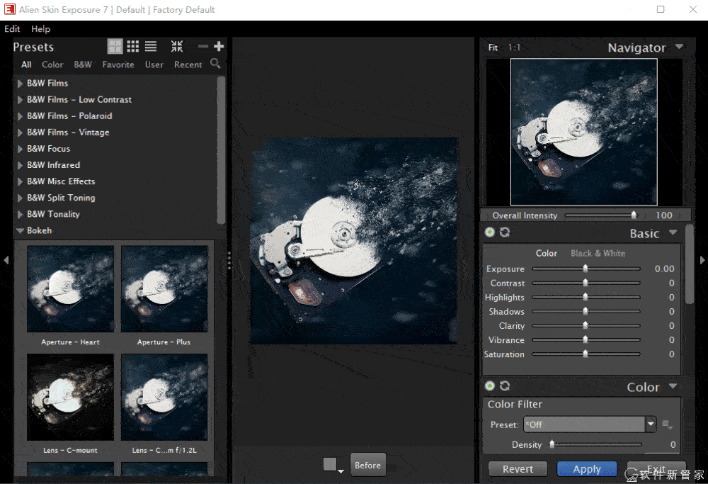 内置了20多款滤镜,相对插件大部分都汉化了,滤镜有一部分没有汉化,不过大部分都可以直接预览效果,这里就做一个简单的展示。