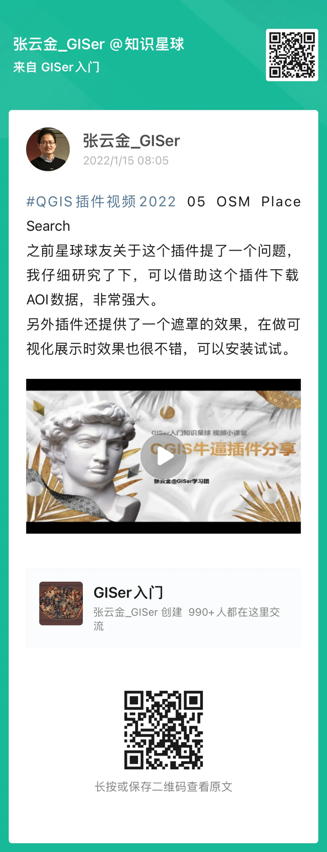 今年我在知识星球做了一个新的专栏,以视频的形式讲解QGIS中的牛逼插件,目前已经录制了10多个视频了。而这个插件在今年初就给大家做了介绍。