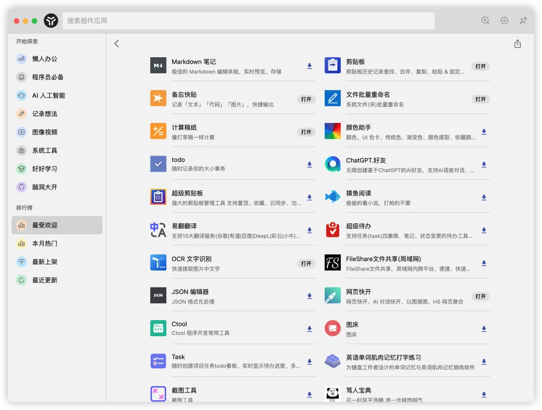 你也可以从最受欢迎,本月热门,最新上架去挖掘更多好用的插件,手机那种聚合功能类的APP有的功能,这里基本也都有。