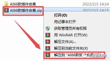 1.选中下载的压缩包,然后鼠标右键选择解压到”AI66款插件合集”(没有解压选项点这里)