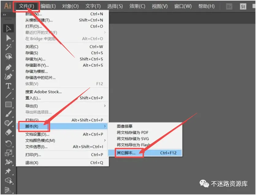 3.双击打开桌面上的“AI”软件,新建一个文件,依次点击“文件——脚本——其他脚本”