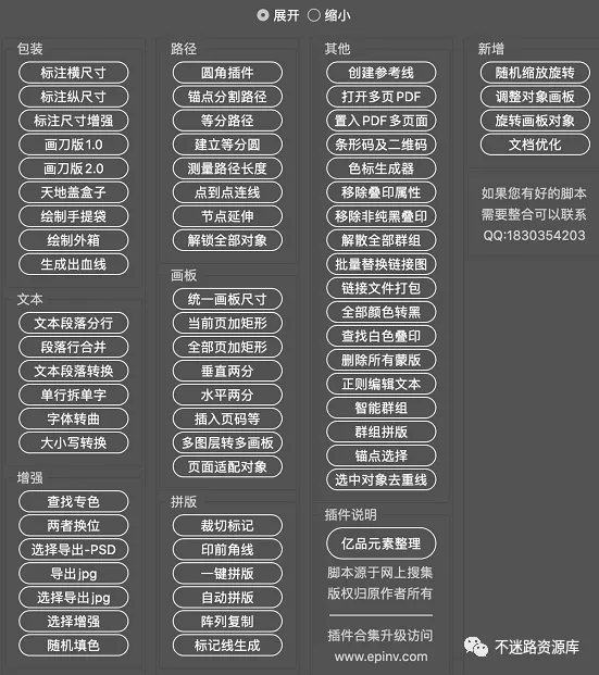 AI66款插件合集为AI插件合集2.0和3.0 ,插件功能较多,对文字段落,包装制作,生成出血,以及印刷色的标注,都有涉及。