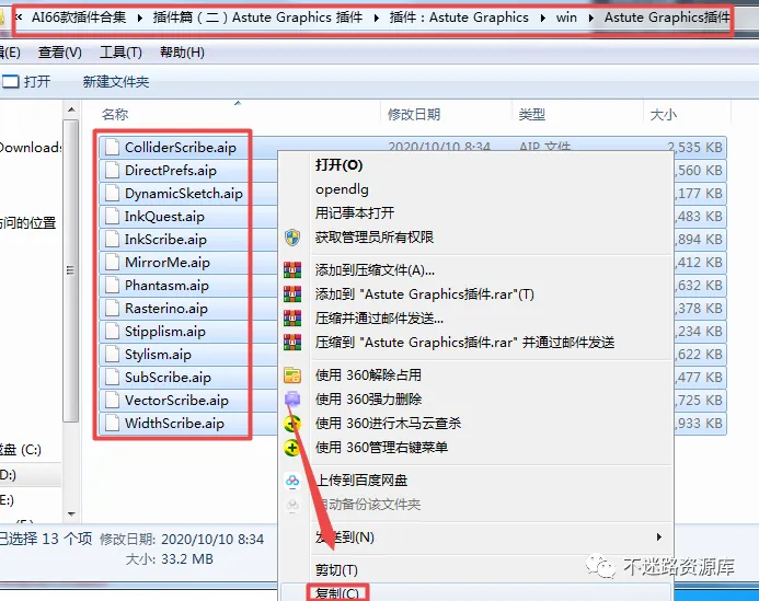 6.依次打开“插件篇(二)Astute Graphics插件——插件:Astute Graphics——win——Astute Graphics插件”文件夹,.复制该文件夹下的所有文件