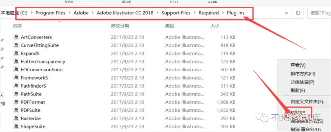 8.依次打开“Support Files——Required——Plug-ins”,在空白处右键点击“粘贴”