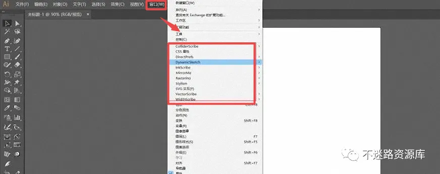16.双击运行桌面上AI软件,依次点击菜单栏中的“窗口”即可查看安装的插件