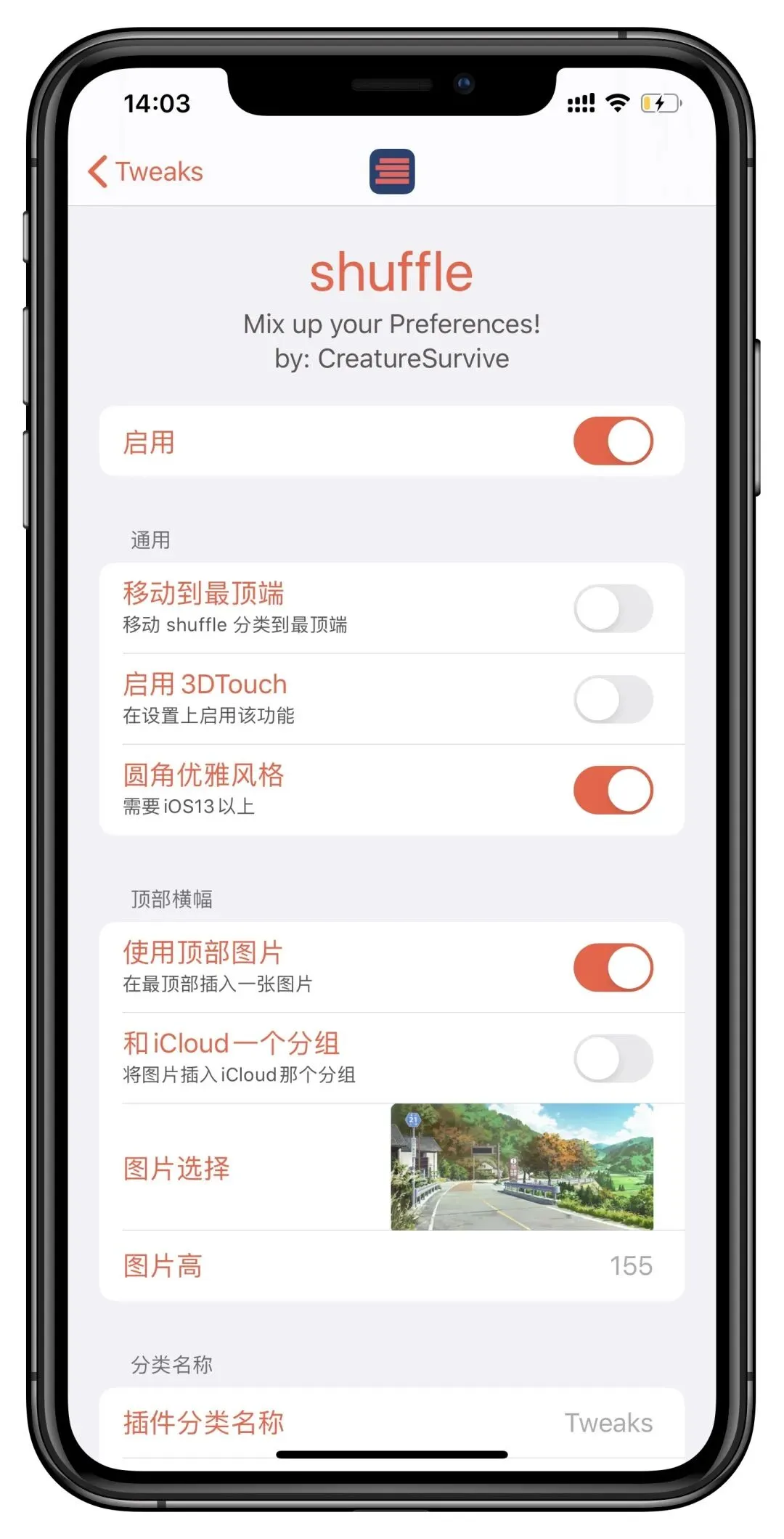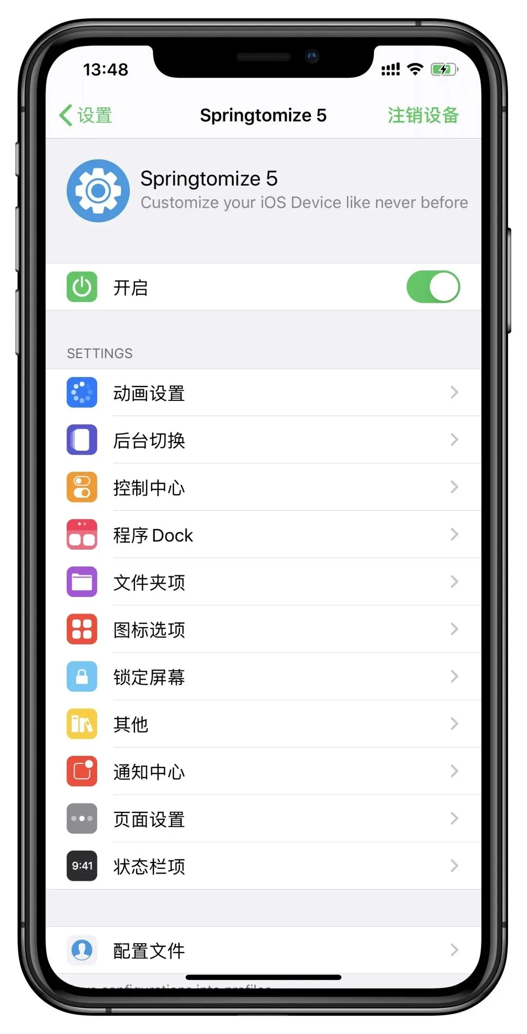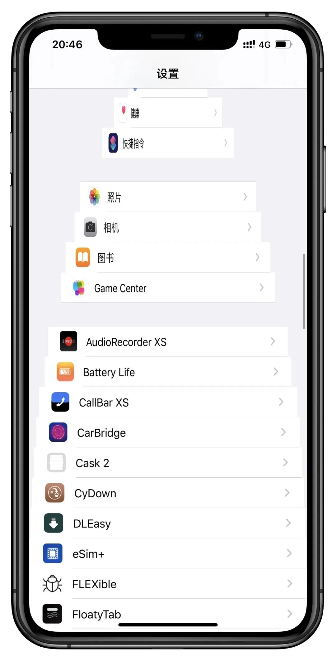 多功能自定义你的设置,越狱必安装插件。区分系统、插件、应用的设置。支持顶部自定义图片归类、管理插件、应用、美化。