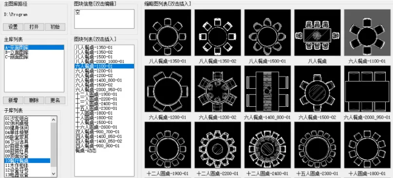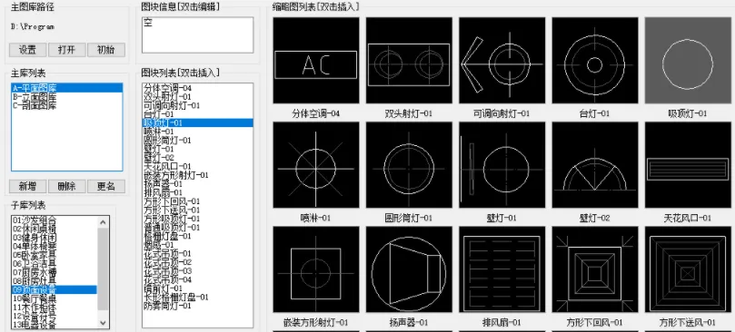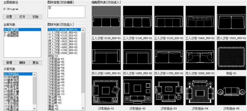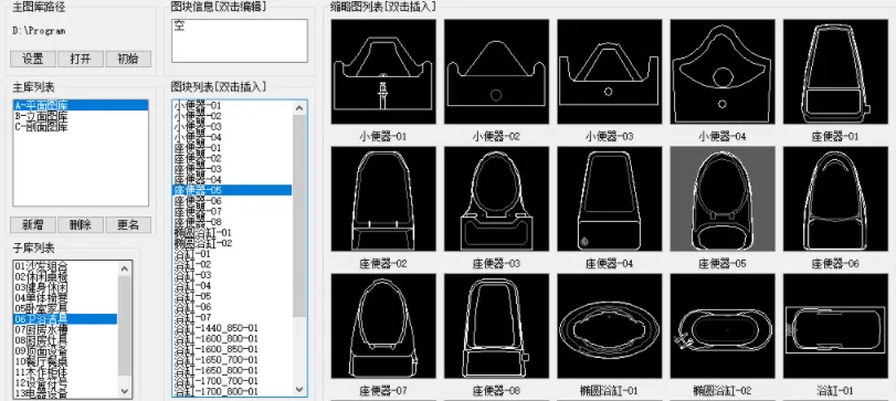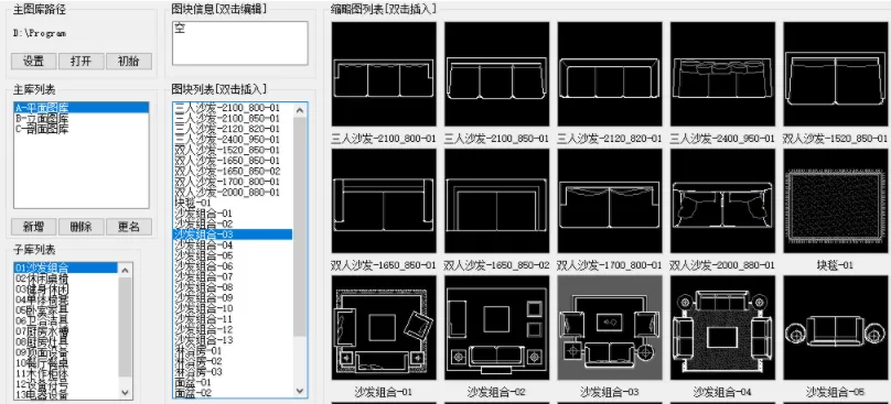 插件同时自带平立剖三大类图库,上千个图块,可以在文件内直接调用: