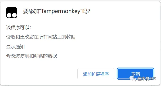 Chrome浏览器提示是否要添加“xxx”吗?点击下方“添加扩展程序”即可安装成功。