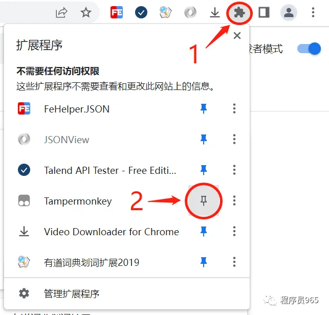 正常情况下,Chrome浏览器插件都可以在Chrome商店安装使用,但是在国内,谷歌商店访问不了 ,上述插件可以关注公众号“程序员965”,回复“Chrome插件”即可获取ctx插件安装包。