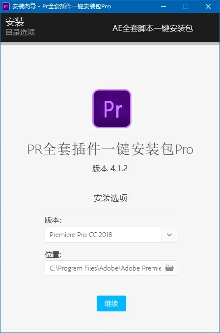 3、软件能自动识别Pr软件版本和安装位置,点击安装即可;